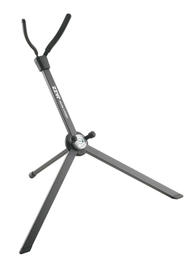 Stabilt og letanvendeligt stativ til tenorsaxofon. Kan foldes sammen og transporteres i saxofonkassen i den medfølgende bløde velourpose.