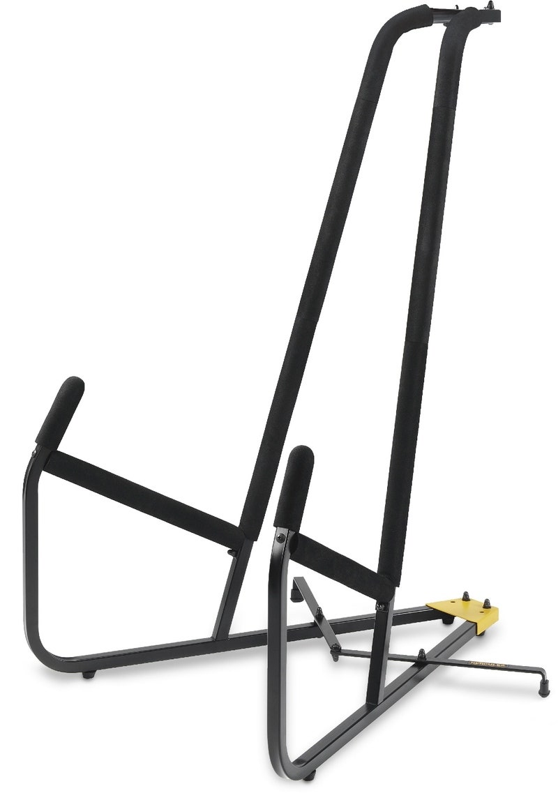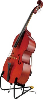 Stativ til kontrabas i stabil polstret stålkonstruktion.