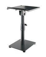 Højdejusterbart bordstativ med op til 12,5° vinkling. Pladen på 250 x 210 mm har en læbe, der sikrer, at højttaleren ikke kan glide af, og de 4 gummiskiver på pladen forhindrer at undersiden af højttaleren ridses og mindsker vibrationer. Stativet kan stilles i 4 højdepositioner fra 350 - 450 mm.