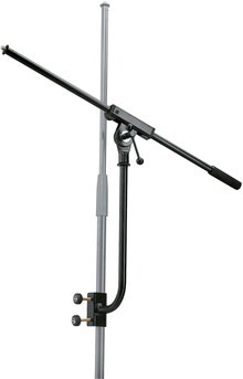 Mikrofonarm med bom og fæste til stativ med op til 22 mm diameter. Sort.