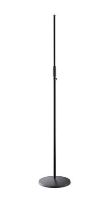 Teleskop-mikrofonstativ med et-hånds justeringsgreb og støbt rund fod. Sort.