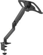 The customized solution for your workplace: this desk mount allows you to position your laptop in a space-saving and ergonomic way. The robust construction with integrated pneumatic spring can withstand loads of up to 9 kg. Thanks to the large, stable desk clamp (up to 60 mm wide), the entire mount can be quickly installed and used flexibly. Of course, the tray can be continuously tilted, rotated, and swiveled for a perfect viewing angle and a neck-friendly posture. In addition, the entire arm can be swiveled 360°. The integrated cable management also ensures a tidy and professional workplace.