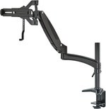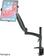 Fjederdæmpet svingarm af aluminium til montering på bordplader med tablet-holder til ca 10-16" tablets.
