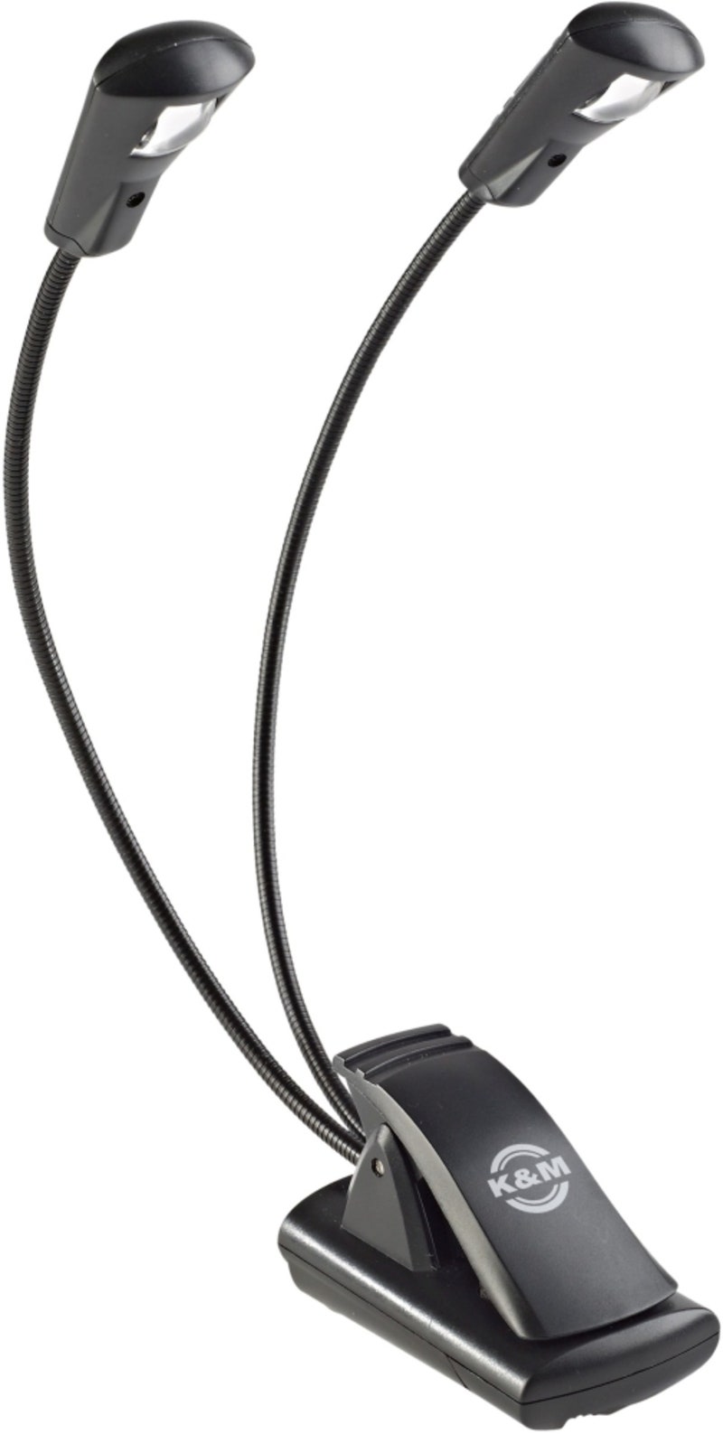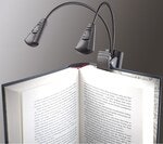 Med 2 separate svanehalse udstyret med hver sin højtydende, enerigibesparende LED, leverer denne lille klemmelampe et jævnt og behageligt lys. Hver lampe har sin egen tænd/sluk-kontakt, og clips-basen kan stå af sig selv, eller monteres på alle flader med en tykkelse på op til 25 mm. Lampen får strøm fra 3 stk. 1,5V AAA batterier (følger med), med en levetid på op til 20 timer.