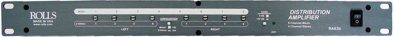 Line level-forstærker til distribution af 8 balancerede mono/4 stereo audiosignaler.