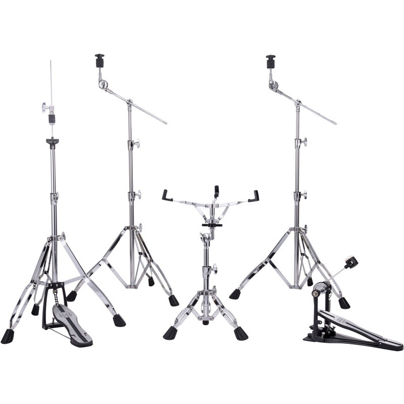 Artikelnummer 4045140Mars Hardware pack innehållande P410 bastrumpedal, H410 Hi-hatställ, S400 virvelställ, 2x B400 cymbal bomställ. Krom.