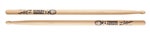 The Thomas Pridgen Artist Series stick is bold and aggressive by design. Its extra length combined with a short taper pushes more weight to the front of the stick, allowing the diameter to stay in the sweet spot between the 5A and 5B. A large oval tip translates all that power into fat sound on the drums and plenty of volume from the cymbals. This natural color stick features Thomas’ cartoon character logo.