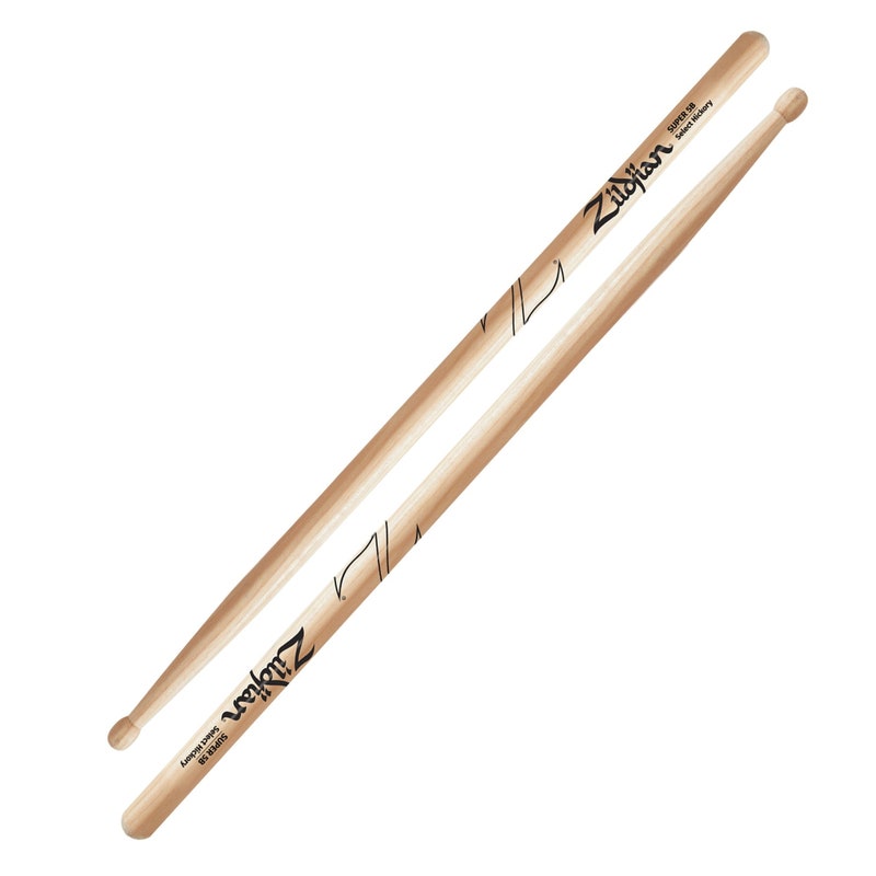 5B-stikker er lidt mere af det hele. Den ekstra tykkelse resulterer i mere volume, og lidt mere mellemtone, men kræver lidt mere af trommeslageren. Her er et par med Zildjians flotte sortlakering med gylden skrift og nylonhoved for mere udtalt stik-lyd.
